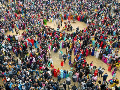Werfen wir nun einen Blick auf die Vorführung der Araber der Wüste durch die Brille der Demokratie und Gleichheit. Der Schwerttanz heißt „Al-Ardha“. Er wird von den älteren Männern ausgeführt, fern von Frauen und Kindern. Das bedeutet, nicht die gesamte Gesellschaft ist beteiligt, und die Männer stehen im Zentrum.